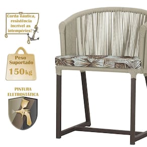 Descubra a Elegancia e Durabilidade da Cadeira Noronha. Combinando estilo e resistencia, esta cadeira traz o melhor do design contemporaneo em aluminio com micro pintura e acabamento em corda nautica. O estofado impermeavel completa o conforto e a funcionalidade, tornando-a ideal para ambientes externos e internos. Qualidade e elegancia que transformam qualquer espaco. Adicione um toque de sofisticacao e conforto ao seu espaco com a cadeira Noronha.