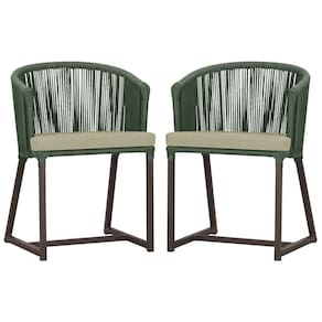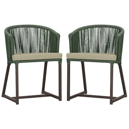 2 Cadeiras De Jantar Noronha Marrom Corda Náutica E7 Trama Verde