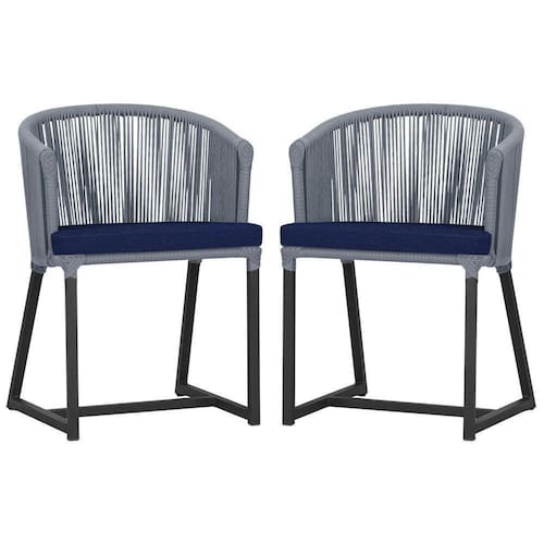 2 Cadeiras De Jantar Noronha Preta Corda Náutica E10 Trama Prata