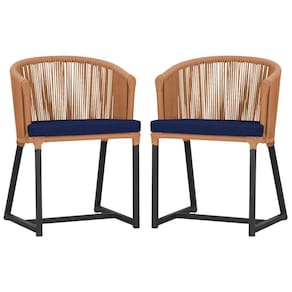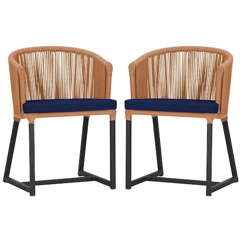 2 Cadeiras De Jantar Noronha Preta Corda Náutica E10 Trama Terra Cota