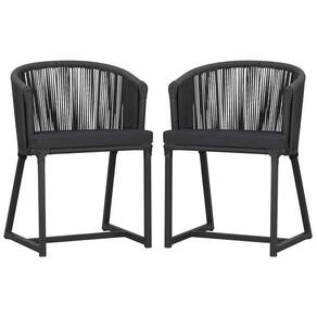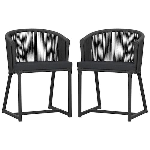 2 Cadeiras De Jantar Noronha Preta Corda Náutica E11 Trama Preto
