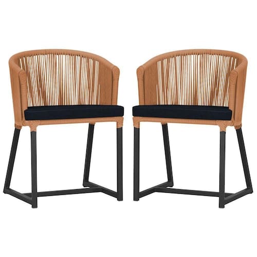 2 Cadeiras De Jantar Noronha Preta Corda Náutica E12 Trama Terra Cota