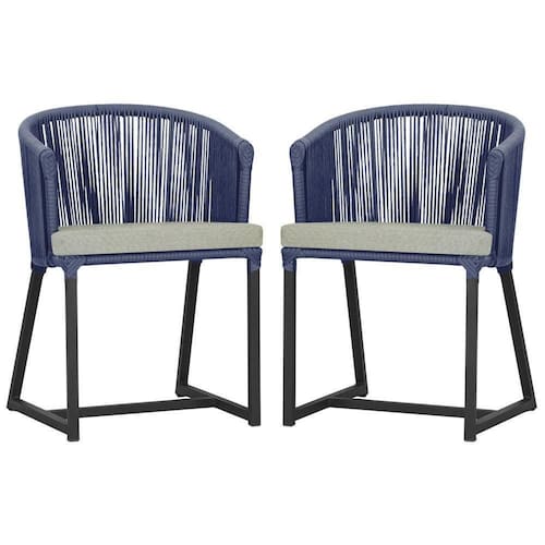 2 Cadeiras De Jantar Noronha Preta Corda Náutica E3 Trama Azul