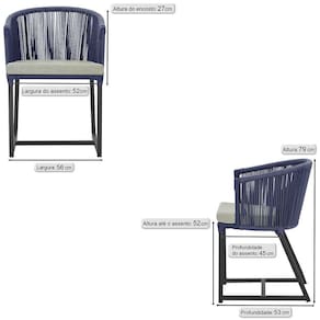 Antes de comprar o seu produto verifique as medidas, o onde pretende instalar e se necessario contratar o servico de um qualificado. Produto conhecido como: Cadeira Noronha, Cadeira de aluminio, Corda nautica, Estofado impermeavel, Moveis de exterior, Cadeira resistente a agua, Design moderno em Cadeira, Cadeira para area externa, Cadeira de jardim, Moveis para varanda, Cadeira duravel, Cadeira de alta qualidade, Conforto em Cadeira, Cadeira elegante.