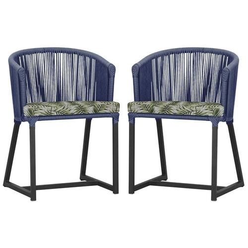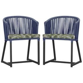 2 Cadeiras De Jantar Noronha Preta Corda Náutica E5 Trama Azul
