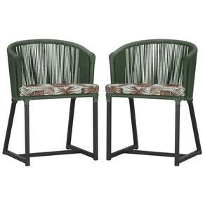 2 Cadeiras De Jantar Noronha Preta Corda Náutica E6 Trama Verde