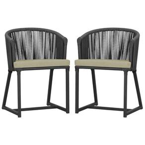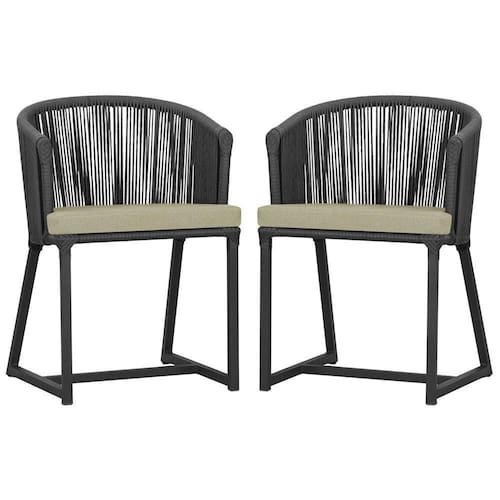 2 Cadeiras De Jantar Noronha Preta Corda Náutica E7 Trama Preto