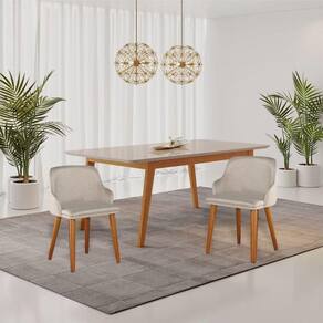 Revestimento: Assento e encosto confeccionados em linho premium, oferecendo conforto, durabilidade e um toque de sofisticação natural.Estrutura e Base: Fabricadas em madeira maciça, com acabamento refinado que garante resistência e um visual acolhedor e elegante.