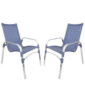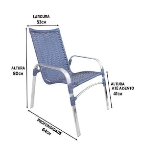 2 Cadeiras Emily Cor Azul Dark, Estrutura Alumínio Polido, área Interna E Externa, área Gourmet, Varanda, Jardim