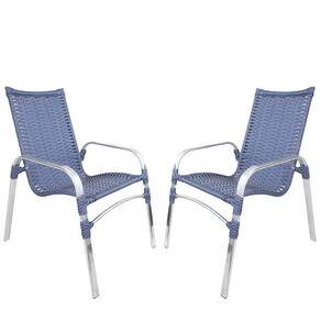 2 Cadeiras Emily Cor Azul Dark, Estrutura Alumínio Polido, área Interna E Externa, área Gourmet, Varanda, Jardim
