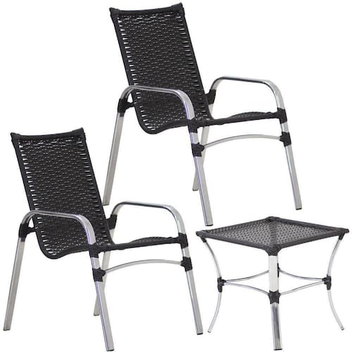 2 Cadeiras Emily Em Aluminio E Mesa De Centro Preto ( OBS: