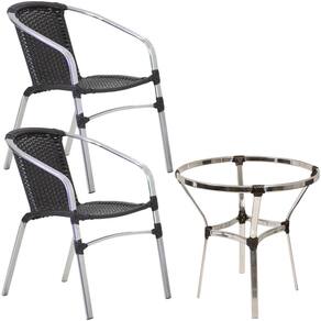 2 Cadeiras Floripa e 1 Mesa Ascoli de Alumínio Trama - Preto