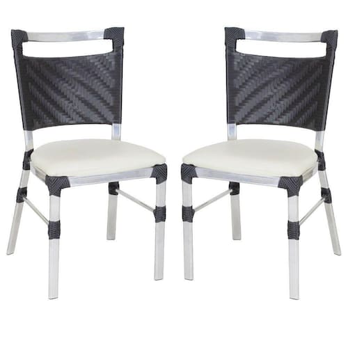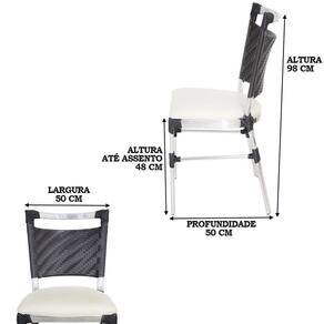 2 Cadeiras Panero Alumínio Fibra Cor Preto Assento Estofado Branco