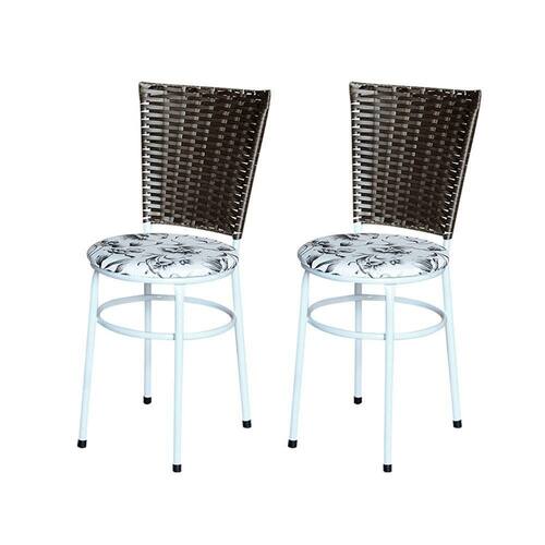 2 Cadeiras Para Cozinha Branca Hawai Marrom Assento Floral Cor:floral Branco