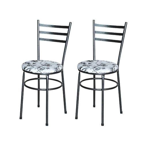 Conjunto 2 Cadeiras Epoxi Preta Craqueada Para Cozinha Com Assento Estampado