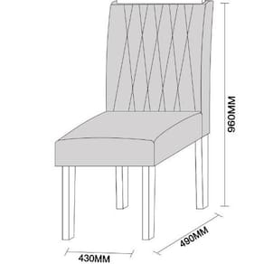 Cadeira Ana A cadeira Ana possui pés em MDF de 25mm para uma maior resistência, cantoneiras de travamento em Aço Carbono, assento e encosto com espuma de alta qualidade, bordado em relevo e acabamento em pintura PU e UV. Dimensões do Produto Montado: Altura: 96 cm Largura: 43 cm Profundidade: 49 cm Peso: 9,1 Kg Características: Cadeira com estrutura 100% em MDF e com assento e encosto estofados Enchimento do encosto: Espuma D-14 Enchimento do assento: Espuma D-18 Material dos pés e apliques: MDF 25mm Acabamento da Cadeira: Pintura PU e UV Material da Estrutura da Cadeira: MDF 25MM Revestimento da Cadeira: Suede Veludo Cadeira suporta até 120 Kg Itens inclusos: 2 Cadeiras, kit ferragem para montagem e manual Montagem/Instalação: Necessita Montagem: Sim Complexidade da Montagem: Pode ser montado por mais de uma pessoa e/ou necessite de maior conhecimento para montagem Recomendação de Manutenção e Limpeza: Limpar com flanela limpa e seca. Não molhar o móvel e não expor em lugar úmido ou próximo de fontes de calor, não usar produtos abrasivos. Observações Importantes: A Combo Stock não se responsabiliza pela montagem ou desmontagem dos produtos (que deverá ser feita por um qualificado). Estes serviços não estão inclusos nos valores dos mesmos. Pode haver alguma diferença de tonalidade entre as imagens do anúncio e o produto real, por conta do tratamento das imagens, calibração de cores do seu monitor e até mesmo pela sua percepção visual. No ato da compra, certifique-se de que as medidas do produto estão adequadas aos elevadores, portas e corredores do da , visto que não fazemos a montagem ou desmontagem de portas ou janelas, pela escada ou içamentos pelo lado de fora do prédio. Ao receber a mercadoria, o cliente deve verificar as condições da embalagem, caso haja alguma NÃO assine o de . Em casos de edifícios ou condomínios, o produto será entregue pela transportadora nas respectivas.