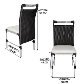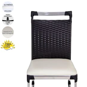 2 Cadeiras Veneza Fibra Sintética Preto Em Alumínio Assento Estofado Branco