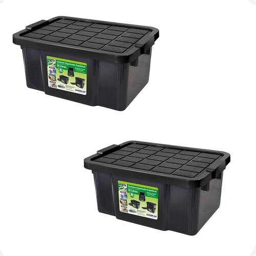 2 caixa organizadora multiuso preta 15l empilhável com tampa