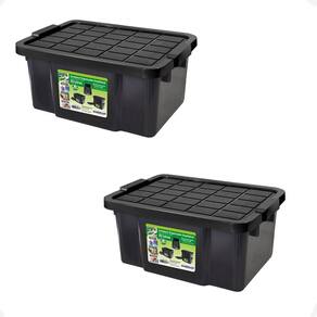 2 caixa organizadora multiuso preta 15l empilhável com tampa Container organizador empilhavel 15 lts - primeira moagem