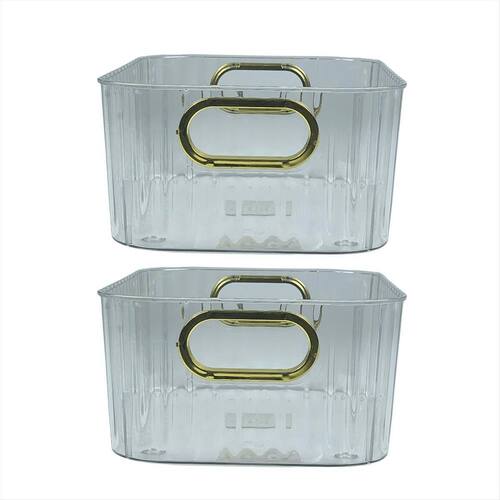 Organize seus ambientes com praticidade e elegância A cesta organizadora transparente com detalhe dourado é perfeita para quem busca aliar funcionalidade e sofisticação no dia a dia. Seu design moderno e minimalista valoriza qualquer espaço, seja na cozinha, despensa, banheiro, quarto ou escritório, deixando tudo no lugar certo e ainda agregando charme à decoração. Com estrutura resistente, é ideal para armazenar brinquedos, mantimentos, cosméticos, itens de higiene, acessórios e muito mais. A transparência facilita a visualização dos conteúdos, enquanto as alças douradas conferem um toque sofisticado, tornando o produto não apenas útil, mas também um item de estilo para sua casa. Garanta já a sua e transforme sua organização em uma experiência prática, bonita e eficiente Especificações Técnicas Material: PET 173g Tamanho: 24cm x 16,5cm x 8,6cm Cor: Transparente com detalhe dourado Uso indicado: Organização de ambientes diversos cozinha, quarto, banheiro, escritório, lavanderia etc. diferenciais: transparência para fácil visualização dos itens Alça reforçada com acabamento sofisticado em dourado Design moderno e versátil Imagens ilustrativas. Marca: Não Informado