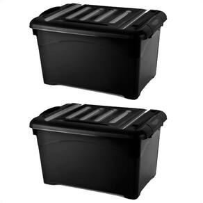 2 caixas organizadoras 25 litros preta com travas e rodinhas 2 caixas organizadoras 25l black com travas e rodinhas