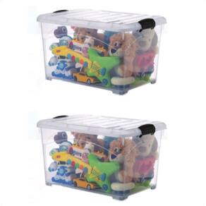 2 caixas organizadoras 25 lts transparente com travas e rodinhas 2 caixas organizadoras 25l transparente com travas e rodinhas
