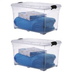 2 caixas organizadoras 95 lts transparente com travas e rodinhas 2 caixas organizadoras 95l transparente com travas e rodinhas