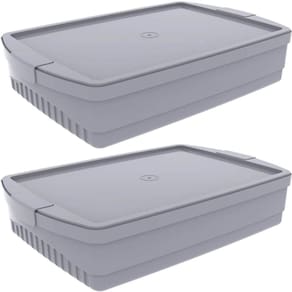 Garantia: 90 dias / Peso: 1,912kg / Cor predominante: grafite / Ref: 7798140515937; Dimensões totais de cada caixa: 48cm (C) x 31,5cm (L) x 10,5cm (A); Conteúdo: 2 caixas organizadoras empilháveis Crippa; Material: polipropileno; Capacidade: 11l; Modelo: Code.