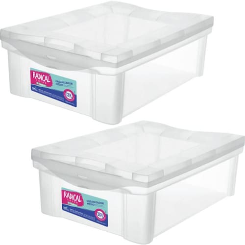 2 Caixas Organizadoras Plásticas 13,5L Ordene com Tampa Radical Color Transparentes.