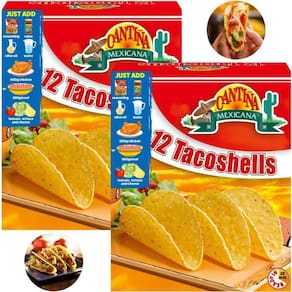 Transforme suas refeições em uma verdadeira festa mexicana com a nosso Kit com 2 Caixas com 12 Taco Shells de Cantina Mexicana. Total de tacos nessa compra: 24. Peso Líquido cada caixa 12 Tacos: 150g Perfeitos para criar tacos crocantes e deliciosos, esses taco shells são a base ideal para suas criações culinárias. Feitos com ingredientes selecionados, eles trazem o autêntico sabor e a textura da comida de rua do México para a sua mesa.