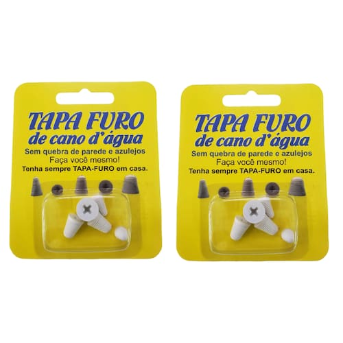COMO USAR: 1) Feche o registro de água 2) Identifique a medida ideal de Tapa-Furo para o seu furo 3) Passe cola de PVC em volta do TAPA-FURO 4) Rosquear com uma chave phillips no furo do cano 5) Aguarde por 3 horas a cola secar 6) Abra o registro de água e pronto