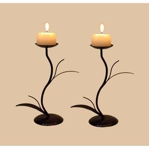 2 Castiçal Folha Fina M 21cm com vela Decoração Candelabro Porta Vela 2 Castiçal folha fina M com 2 velas festa brancas