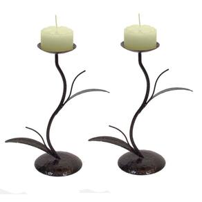 2 Castiçal Folha Fina M 21cm com vela Decoração Candelabro Porta Vela