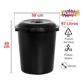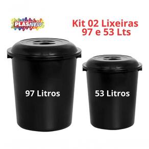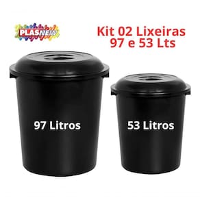 Cesto De Lixo Fechado Preto 97Lt e 53 Lt Plasnew Multiuso.