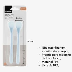 Especificações técnicas:Dimensões da colher: 2,5 x 1,3 x 16,14 cmPeso 0,005 kgMaterial: PP polipropilenoIdade recomendada a partir de 6 mesesLivre de BPAPode ir à lava-louçasEsterilização a vapor não recomendada
