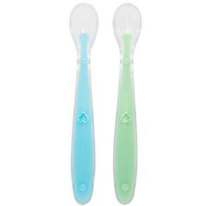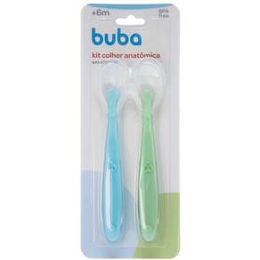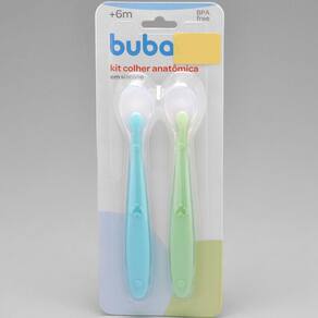 2 Colheres de Silicone para Introdução Alimentar Bebê Mácia 23cm Buba Verde e Azul.