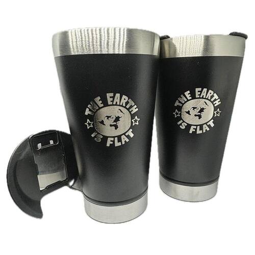 2 Copos Térmicos Terra Plana The Earth is Flat 500ml + Tampa + Abridor Este copo térmico possui uma construção robusta com materiais de alta qualidade, mantêm sua bebida gelada ou quente por muito mais tempo.