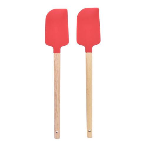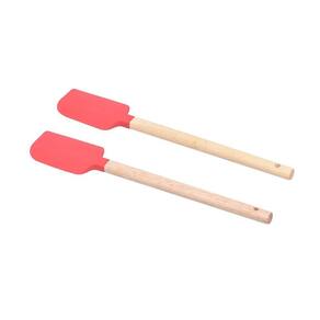 2 Espátulas em Silicone Vermelha com Cabo em Madeira Kenya Com silicone utilizado em sua composição, suporta temperaturas elevadas de até 230C, garantindo versatilidade em seus preparos. Extremamente resistente a odores, descoloração e de fácil higienização. Utensílios em silicone se destacam por proteger panelas e frigideiras de possíveis arranhões causados por atritos durante o preparo.