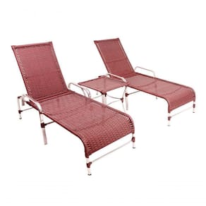 2 Espreguiçadeiras Esteira Catar De Alumínio + 1 Mesa De Centro Garden Piscina Vinho Dark
