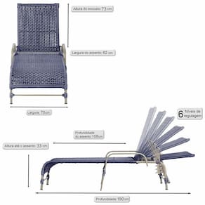 O encosto reclinavel permite ajuste perfeito para seu conforto, enquanto a corda nautica trancada proporciona um toque elegante e ergonomico.