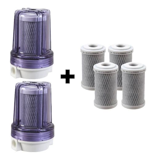 Composição Básica: Carcaça com tampa em Polipropileno e copo em Sangel / Elemento Filtrante em Carvão Ativado