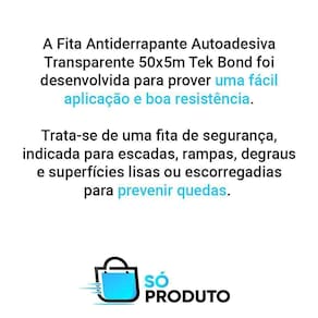 Com um rolo de 50x5m, o kit com duas fitas antiderrapantes autoadesivas da tekbond é uma opção econômica e prática para diversas aplicações. A fita é antiderrapante e autoadesiva, facilitando sua instalação e manutenção. Além disso, sua durabilidade e resistência garantem uma longa vida útil, proporcionando um ambiente mais seguro e protegido.