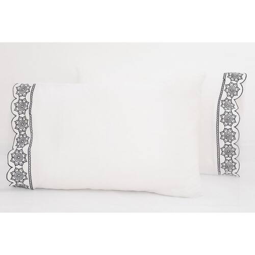 2 fronhas 50cmx70cm 100% algodão 180 fios barrado bordado mandala preto no branco