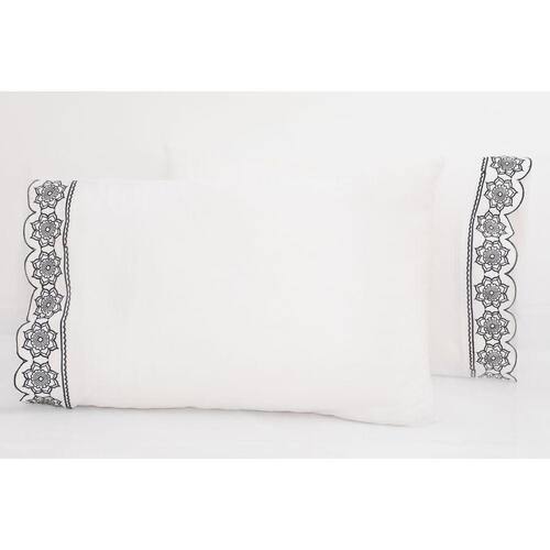 2 Fronhas King 50cmx70cm 100% Algodão 200 Fios Barrado Bordado Mandala Preto no Branco