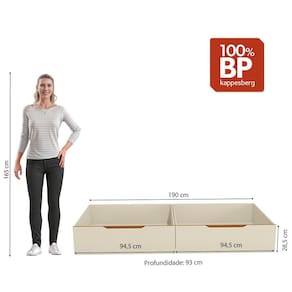 O quarto das crianças, agora, muito mais completo com a Linha Crescer de Dormitório Infantil da Kappesberg. Com diversos módulos para montar de acordo com o seu espaço e preferência, o Módulo Auxiliar de 2 gavetas T312 é uma ótima opção para otimizar espaço embaixo da cama e garantir mais facilidade na organização. Medindo 28cm de altura, 1,90m de largura e 93cm de profundidade, é produzido totalmente em MDP em acabamento BP, garantindo maior durabilidade e resistência, principalmente contra riscos, arranhões e gotas d'água.