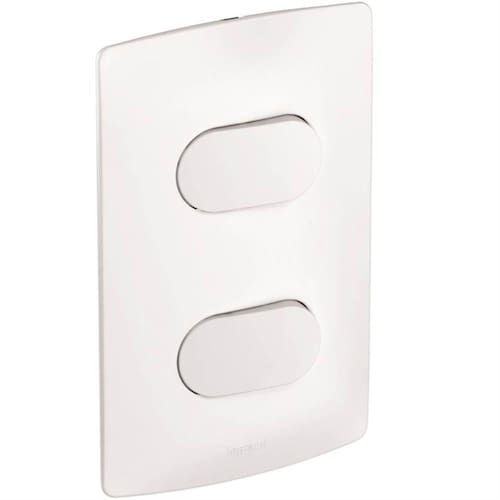 02 Interruptores Paralelos Modular de Embutir 10AX 250V~ com placa, borne com parafuso, distancia normal de abertura dos contatos, tecla basculante, função 06, de concepção A, IPX0, não protegido contra choques elétricos