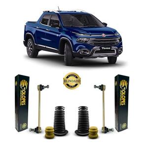 Seja Bem-vindo a Loja Oficial da Auto Flex Loja especializada em suspensão automotiva nacional e importada, comercializando peças de segurança e qualidade =============================================================== Veículo Blindado Conteúdo: 02 - Coifa Dianteira Nova02 - Batente Dianteiro Novo Part Number: 51980013 / 52016558 / 52048180 =============================================================== Pergunta: Qual a marca desse produtoResposta: As bieletas são da marca Solopes. Os Batentes e Coifas são da marca Auto Importados, marca própria de extrema qualidade. Pergunta: Se aplica em quais carrosResposta: Este produto se aplica perfeitamente á Fiat Toro dos anos 2016 a 2020. Pergunta: Este produto possui garantia ================================================================ Ainda tem dúvidas ou precisa de algo personalizadoUtilize o campo de perguntas em caso de dúvidas ou caso precise de algo específico, estamos à disposição para atendê-lo á .