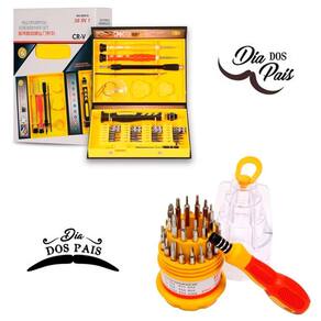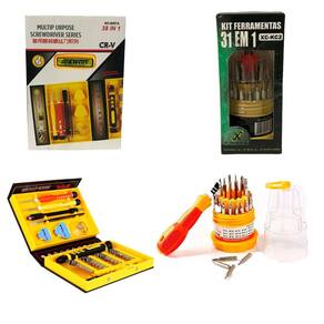 2 kit chaves 31 em 1 com estojo possui vários modelos de ponta de chaves. São 31 peças ideal para manutenção de relógios, celulares e eletrônicos em geral.Ferramentas: cabo para ponta de chave; pontas de chaves; chave do tipo torx; chave phillips; chave fenda; chaves allen.Características:- marca: flex- modelo: xc-kc2especificações:- kit ferramenta 31 em 1;- blister com 1 unidade;- com 30 pontas imantadas;- ótima qualidade e precisão;- cabo giratório;- aderente;- antiderrapante;- encaixe magnético;conteúdo da embalagem:- kit ferramentas 31 chaves em 1 granel xc-kc2 - flex Marca: Não Informado