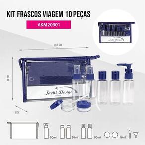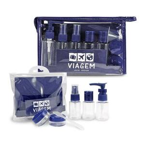 2 Kits de Frascos para Viagem - 7 Peças e 10 Peças - Jacki Design Azul -