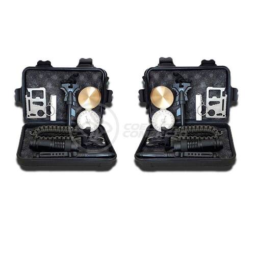 - 2x Canetas táticas de aço (com quebra vidro);